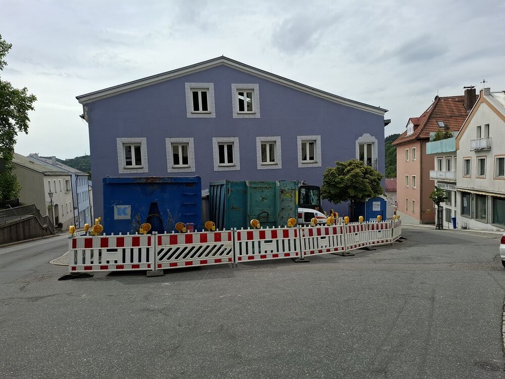 Im Zuge der Sanierung der Hauptstraße wurde von der Stadt das sog. Schmellerhaus (und die ehemalige Bäckerei Schubert) gekauft, um es abzureißen und damit eine Verbreiterung der Hauptstraße zu erreichen. Damit verschwindet aber gleichzeitig der gewohnte Anblick eines markanten Hauses, das wie eine Barriere in der Abfahrt stand.